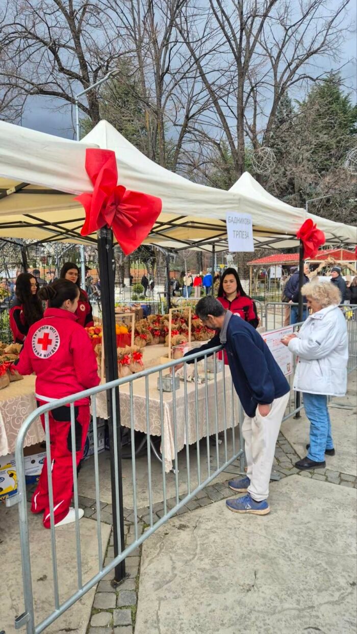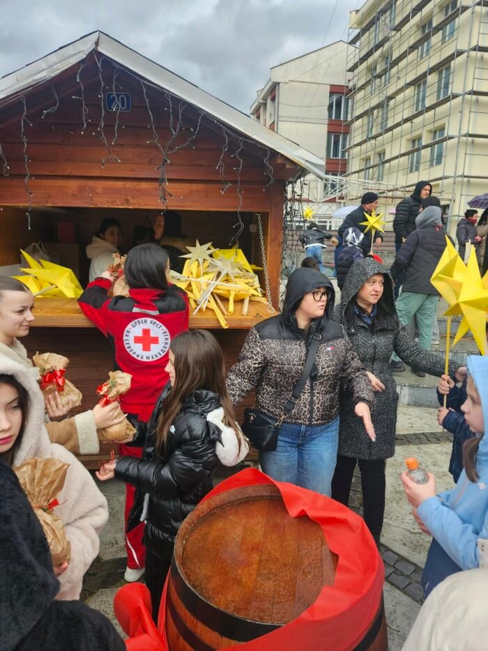 Учество на волонтери од Црвен крст при одбележување на Бадник на градскиот плоштад
