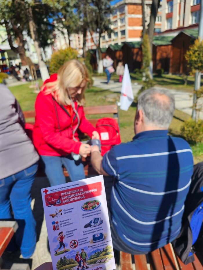 Во градскиот парк беше спроведена акција за проверка на крвен притисок, при што волонтерите делеа едукативни флаери за превенција и заштита од срцевосадови заболувања. Со активноста беа опфатени околу 120 лица, со цел укажување на значењето на здравиот начин на живот, редовната контрола и навремената превенција преку промоција на здрави навики.